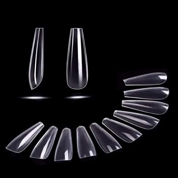 Quantity: 1 Box, 100 Pieces/box. Size: 10 sizes, 10 pieces for each size Shape: Coffin (Ballerina) Style: Full cover Length: Long Color: White, Natural, Transparent