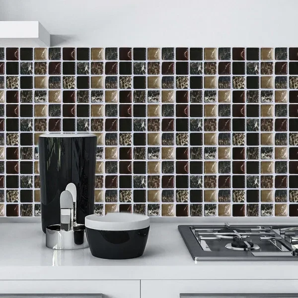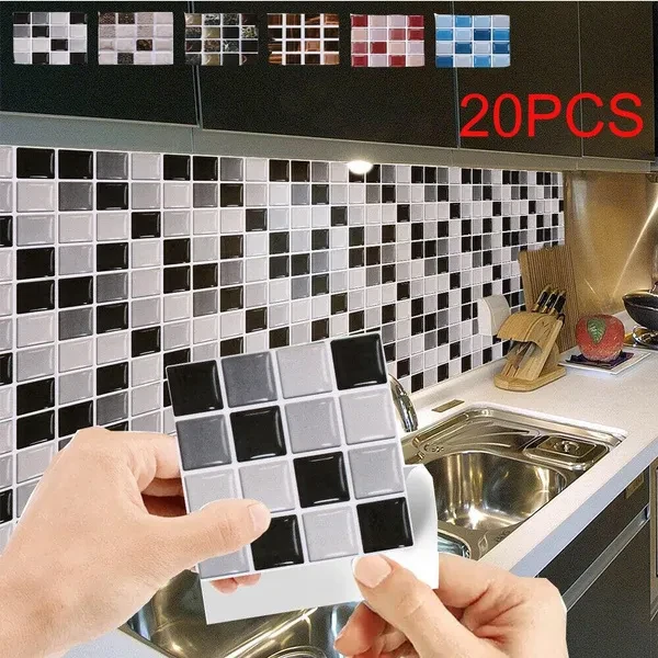 Product Description: Features: 30pcs mosaic wall stickers retro PVC waterproof tile glue household tile stickers kitchen bathroom furniture Size: 10cm x 10cm Material: PVC Package Includes: 20 x wall stickers