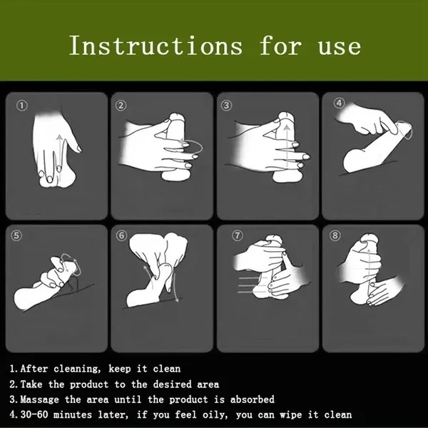 Description: 1.Contains a variety of essential oils, which can effectively adjust the mechanism of the men, so that men restore the normal mechanism. 2.Increase penis length and size, stimulate blood vessel enhance self-confidence and performance. 3.Harder, longer and stronger. 4.Impotence, premature ejaculation, sexual dysfunction, low libido, slow growth itself leads to poor development of the penis, weak erection, ejaculation, weak intensity have good regulation. 5.Improve the quality of sexual life and enhance your performance, she is crazy for you. Specifications: Gender:Men NET WT:10ml Shelf life:3 years Country/Region of Manufacture:China Skin Type:All skin types Size Type:Full size Age Group:Adults Package included: 1 x Penis Enlargement Essential Oil Note: 1.Please allow 1-3mm differs due to manual measurement. 2.Due to the different display and different light,the picture may not reflect the actual color of the item. Thanks for your understanding.