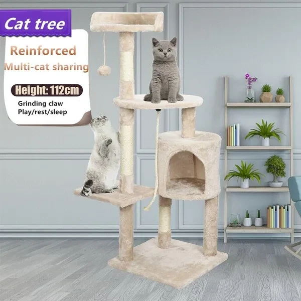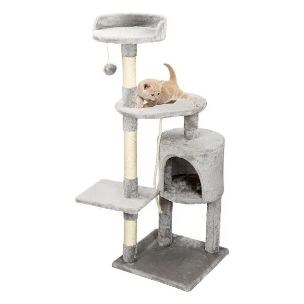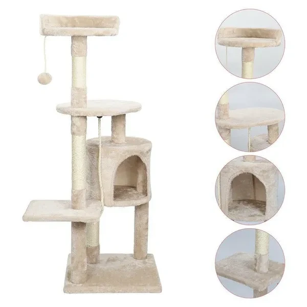 Specifications: Color: beige/Dark gray/Light gray Product Type: Scratch Column Height: 112cm Cat litter: 30*25cm (length * height) Floor: 40*40cm Square platform: 30*25cm Oval platform: 40*30cm Grab column: diameter is about 7-8cm Platform with amusement ball: diameter about 30cm Description: The comfortable cat litter invites your pet cat to relax and hide. A plush ball provides the necessary fun, and a plush game ball is suspended below the top platform. There are three platforms for cats to choose to jump or rest. A grab post made of sturdy sisal and additional sisal rope provides paw care and keeps cats away from furniture. feature: -Leisure and entertainment: This cat climbing tree with 1 cat litter, 1 pompom and 1 sisal rope can satisfy your cat's game instinct. The perfect balance between entertainment and leisure. -Claw care: Sisal scratching post can provide necessary claw care to keep cats away from furniture. -Practicality: The height of the cat toy is 112 cm, which is very suitable for use in any room, and ensures a pleasant vision, and guarantees the health of animals and humans. -Easy to assemble: Can be easily assembled according to the attached assembly instructions. packing list: Cat climbing set * 1 Manual * 1