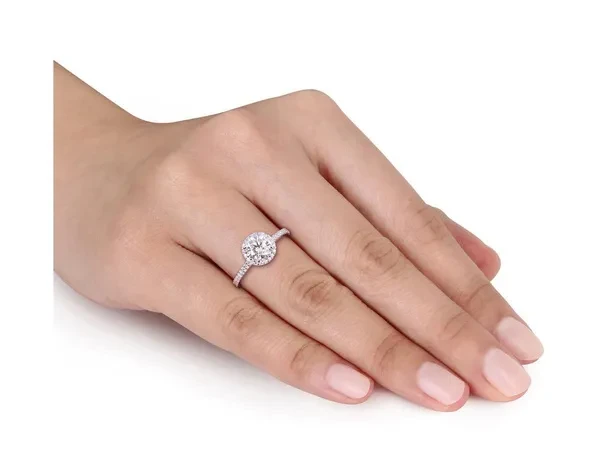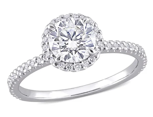 1.25 Carat (ctw) Lab-Created Round-Cut Moissanite Halo Engagement Ring in Sterling Silver
