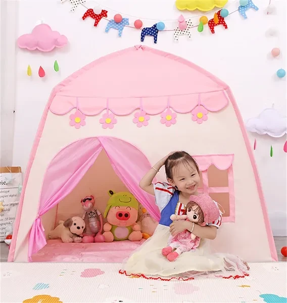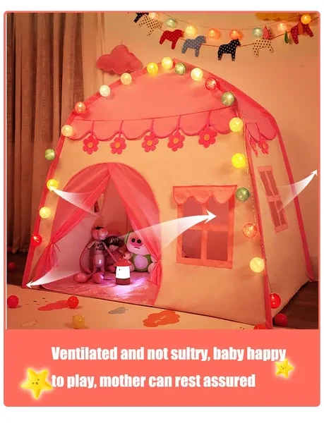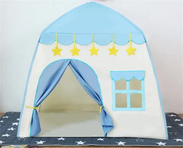 Large Children's Tent Folding Kids Tents Tipi Portable Baby Wigwam Playhouse Indoor Princess Tent Infant Kids Room Decor Teepee Parameter Material: Oxford cloth + fiberglass rod Applicable People: boy, girl Function: large space, easy to set up Suitable Age: suitable for all ages Accessories: account storage bag support rod Color: pink,blue Size about130*100*130cm/51.18*39.37*51.18in Installation: Open the package and take out two fiber rod brackets, find the entrance position of the tent underground, and cross the two strings of fiber rods to the opposite corner of the tent. Curtain design: Put down the curtain, anti-mosquito and conceal the baby more secure. Light and compact, travel artifacts, low space occupancy, whether it is handcuffs or placed in the trunk, peace of mind and effort. Features The comfort of the large space is soaring, it can accommodate 3-4 children, and the spacious space baby is more comfortable to play in. The design of the windows on both sides: Good lighting, breathable and anti-mosquito, the baby is more comfortable. List 1*Tent and supporting rod