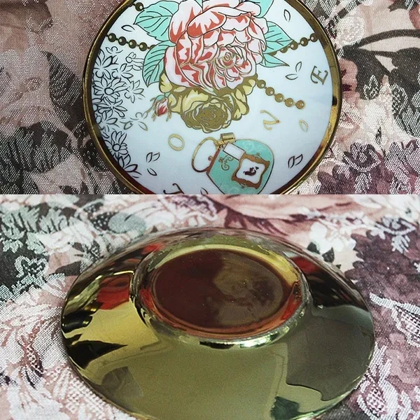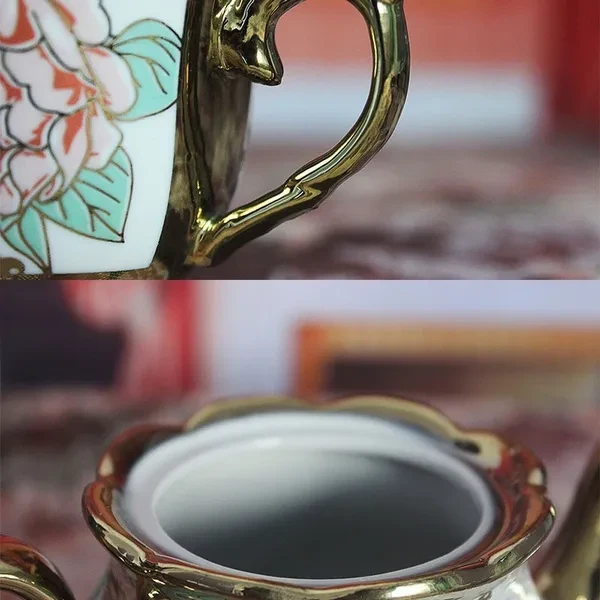 Specification: Set 6 ceramic cups + 6 spoons + 6 cuppads + 1 pot + 1 shelf Surface technology: electroplating Packaging: gift box