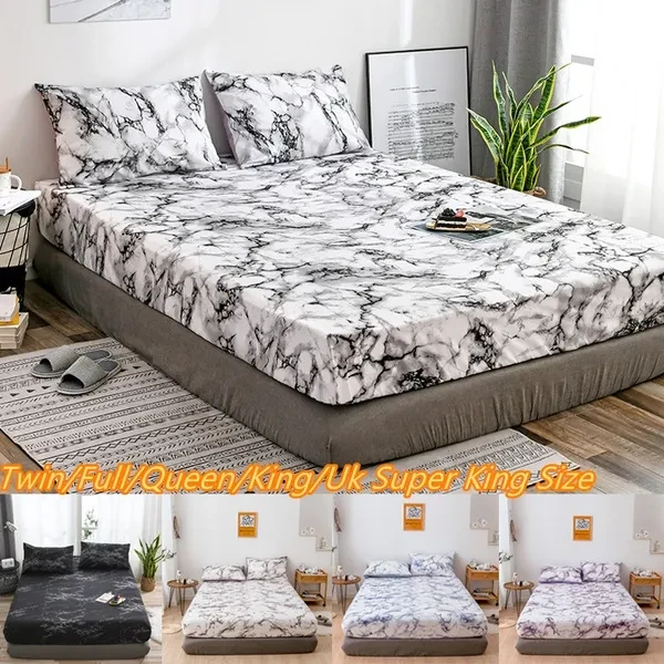 13Pcs Elastic Fitted Sheet Deep Pockets Up To 16 Inches Marble Printed Brushed Microfiber Mattress Covers Set Twin Full Queen King 5 Size 6 Colors (Pillowcases Optional)