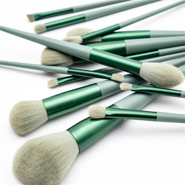 Set of 13 brushes, including foundation brush, makeup brush, shadow brush, blush brush, eye shadow brush, lip brush, etc. Soft and fine artificial fibers reduce damage to the skin. Item: Makeup Brush Color: green, light coffee. Package Include: 13Pcs Makeup Brush (with storage bag) Warm Remind: 1. About size: It will be 1-2cm differences due to manual measurement factors. (1cm=0.39inch, 1 inch=2.54cm) 2. About color: Due to the difference of monitors and light effects, the actual color of items might has slightly different from the color be shown in the pictures. Thanks for your understanding.