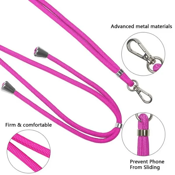 Universal phone lanyard Upgraded version Type: mobile phone universal lanyard Material: silicone/nylon/metal buckle Function: Anti-lost, diagonal span, safety, anti-drop Matching: rope buckle + Leather card Note: Changing the shape of the Leather card sheet will not affect the use.