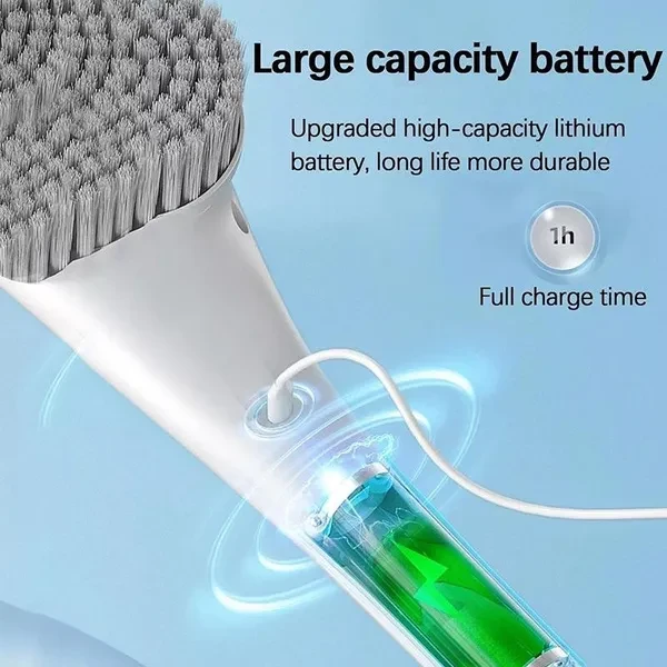Features: Breeds a lot of bacteria, including mites, varroa, E. coli, etc,bring health hazards to you and your family. Powerful motor and 360° high speed rotation design help to easily remove stubborn stains. One-key-start operation, easy to operate with just one hand. Comes with 5 brush heads to meet you a variety of daily cleaning needs. Large capacity lithium battery, providing 90mins of working after 1 hour of charging. IPX7 Full Body Waterproof, safe to use and easy to clean( but do not soak in water for long time).  Application: Nylon brush head: Cleans flat tiles, floors, glass and other hard objects, effective in removing stubborn stains Scouring pad head: For cleaning pots and pans, walls, glass doors, etc. Sponge head: For cleaning dishes, glass sinks, etc. Steel wool head: For heavy stains on pots, pans, stoves, etc. Plush head: For further polishing and brightening of mirrored glass, cars, leather shoes, etc.  Spcification: Name: Electric cleaning brush with 5 brush head Material: ABS Color: White Waterproof grade: IP7 Charging method: USB Power supply method:Lithium battery Product List: 1 x Main body 1 x Plush fabric head 1 x Nylon brush head 1 x Sponge brush head 1 x Scouring pad head 1 x Steel wool head 1 x Charging cable Notice: 1. The actual color of the project may be slightly different from the picture displayed on the website due to many factors such as the brightness of the display and the brightness of the light. I sincerely hope you can understand. 2. The size is manually measured, and there may be an error of 0.2-0.5cm, which is a normal phenomenon.