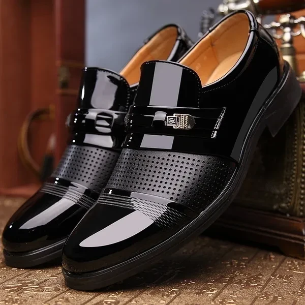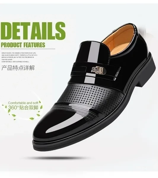 2018 New Fashion Men's Formal Leather Shoes England Men Pointed Toe Business Shoes Male Oxford Breathable Shoes Dress Wedding Flat Shoes Scarpe Da Uomo in Pelle Plus Size 38-48