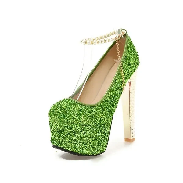 2020 Women High Heels Glitter Sequined Bride Wedding Party Valentine Shoes Red Blue Green Beading Strap Platform Pumps