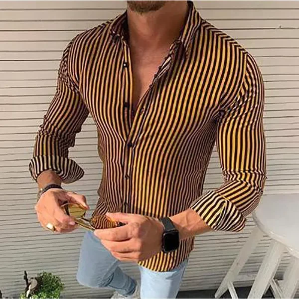 2021 Men's New Fashion Casual Striped Long Sleeve Shirt