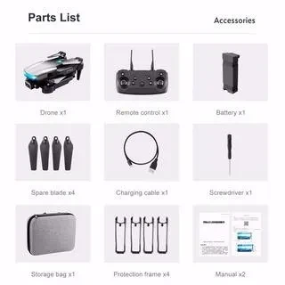 Package Included: Eachine : 1 x Eachine RC Quadcopter 1 x Transmitter 1/2/3 x 3.7V Battery(Match according to SKU) 1 x USB Charging Cable 4 x Protection Cover 4 x Spare Blades 1 x Screwdriver 1 x User Manual 1 x Drone bag Specifications: Color: black Packaging: opp Material: PVC Product size: 14cm*14cm*7cm Expand size: 30cm*30cm*7cm Net weight: 300g Function: ascending, descending, left turn, right turn function; forward, backward, left, right. Fling, stunt roll, headless mode, high hover, WiFi real time video camera, gorgeous air light, APP remote control, gravity induction, three speed control. Selling point: modular battery, equipped with high-grade air collection bag, remote control sand texture, comfortable and incomparable Telecontrol battery: AA battery *3 (not included) Operation mode: left-handed throttle Battery capacity: 3.7V 1600mAH Flight time: about 30-40 minutes Charge time: 60 minutes Telecontrol distance: 200M Camera pixel: 4096P,1080P,720P Wide-angle lens:120 degree Maximum rising speed: 3m/s Working temperature: 0-40 degrees centigrade WiFi frequency: 2.4GHz Made of the high-grade material, which is durable, wear-resisting, anti-corrosion and eco-friendly. 2.4GHz working frequency with strong anti-interference, long distance control and fast response ability, the drone will not interfering with each other. 4 Channels which can fly up, down, forward, backward, left turning, right turning, left sideward fly, right sideward fly and stunt rolling 360 degrees. It has 6-axis gyro which can have more stable flying and be easy to control. The headless mode enables the operator to control the drone freely, no need to adjust the position of aircraft before flying.