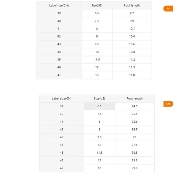 Welcome to our shop and enjoy your shopping moment! Size Chart: CN/EU 38= US 6= Foot Length 240mm CN/EU 39= US 6.5= Foot Length 245mm CN/EU 40= US 7= Foot Length 250mm CN/EU 41= US 8= Foot Length 255mm CN/EU 42= US 8.5= Foot Length 260mm CN/EU 43= US 9.5= Foot Length 265mm CN/EU 44= US 10= Foot Length 270mm CN/EU 45= US 11= Foot Length 275mm CN/EU 46= US 12= Foot Length 280mm CN/EU 47= US 13= Foot Length 285mm CN/EU 48= US 13.5= Foot Length 290mm ◆NOTICE Please refer to our size chart, and choose the size according to your foot length. If your feet have a bit fat, please choose one bigger size. Measured by hands, please allow 1-3mm error! Manufacturer Name :Noah Address:39 Rue Cambronne E-mail:NoahHernandez@waveecrest.com This merchant is committed to only offering products that comply with the General Product Safety Regulation.