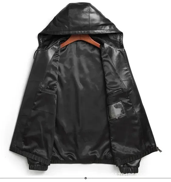 Applicable Season : Spring and Autumn Applicable Scene : Business Pattern Type : Solid Closure Type : zipper Collar : Turn-down Collar Model Number : PY120 Decoration : NONE Lining Material : Polyester Style : Smart Casual Type : Regular Detachable Part : NONE Hooded : Yes Thickness : STANDARD Sleeve Length(cm) : Full Clothing Length : Regular Material : Sheepskin Origin : Mainland China CN : Guangdong Outerwear Type : Leather & Suede Gender : MEN