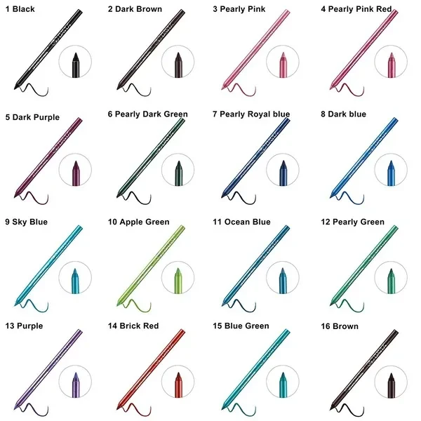 Size:Full Size 100% Brand New Use For Party,Professional Or Home Suitable:Eyeline,under eyeliner,eyebrow,eyeshadow Waterproof Color Pigment Eye Liner Gel Pencil Color:25 Colors For Choose Features:Waterproof,Long lasting Decorate Your Eys As You Like Package include:1 Pc Eyeliner Pencil Note: This eyeline pencial can't twist and turn,you can use pencil sharpener. And the pencil sharpener NOT INCLUDE IN PACKAGE. CAUTION: For External Use Only.Avoid Contact With Eyes. Please Store It Under Shade Environment And Keep Out Of Reach Of Children.