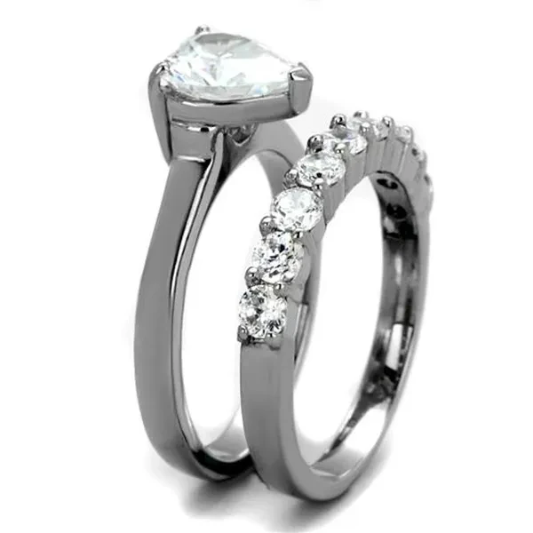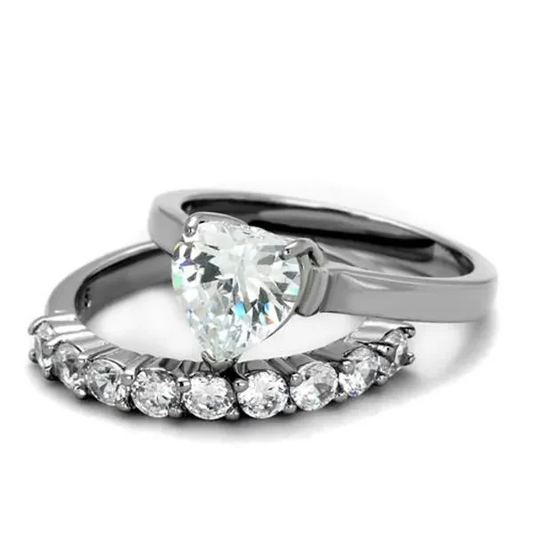 2.70 Ct Heart Cut Cubic Zirconia Stainless Steel Wedding Ring Set Women's Size 5-10