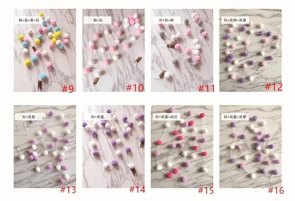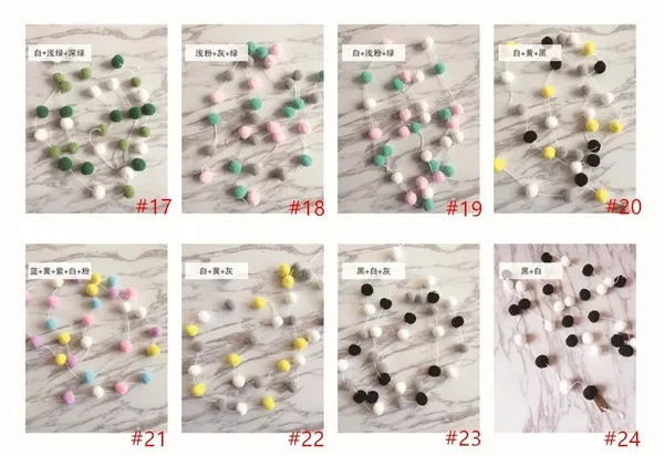Package Included: 1 set Wool Felt Ball Descriptions: Material: Handmade using 100% wool fibers Ball Size:2.5cm Length:2m Quantity:1set 30pcs ball Colors:Sww the pictures