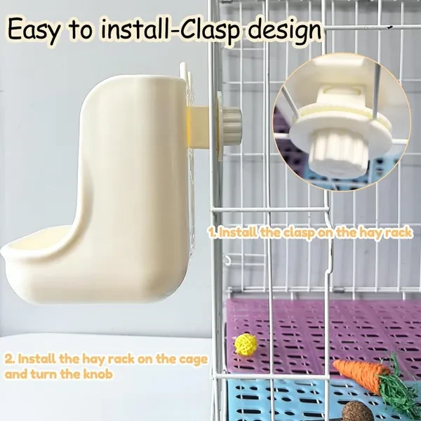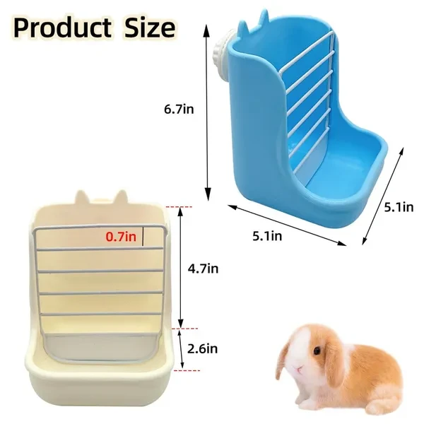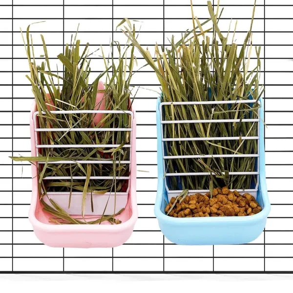 【Hay Feeder】Rabbit hay feeder is a feeder designed for small animals like Guinea Pig, Rabbit, etc.The feeder’s upper layer is a grass rack,and the lower layer is a food bowl ideal for rabbits, chinchillas, guinea pigs or other small animals. 【Safe and hard material】rabbit hay rack is made of plastic and metal. It is safe for your pet, even baby pet .It is a great long-lasting feeder rack for pet . 【Easy installation and usage】No tools require. Hay feeder for guinea pigs can be placed anywhere your pets prefer. It takes less than 1 minute to put the pet feeder in the cage.freely adjust its height. No tool required. 【Easy to clean】The grass frame net is detachable, and it is cleaned after flushing. The edge of the bowl is thick and round and resistant to biting. Remove the net to separate the grain bowl or water bowl. 【Dimensions】Approximately 5.1'’ X 5.1’’ X 76.7’’(L*W*H) ,blue and pink two,please make sure our hay feeder fit your case before you purchase. The hay rack is designed for rabbit, guinea pig, chinchilla ,or other small animals.
