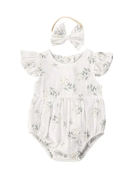 Baby Girls Romper, Sleeveless Floral Pattern Classical Round Neck Ruffle Waist Design Button Closure Jumpsuit with Bow Hair Band Perfect for your kids in daily wear and suitable to photograph, which is very cute. The casual babies wears are made from high quality material that is soft, gentle and comfortable. It´s a beautiful and comfortable outfit for little babies to wear. Size Charts Size(cm) 70 Length: 38 Bust: 52 80 Length: 41 Bust: 54 90 Length: 44 Bust: 56 100 Length: 47 Bust: 58 Size(inch) 70 Length: 14.96 Bust: 20.47 80 Length: 16.14 Bust: 21.26 90 Length: 17.32 Bust: 22.05 100 Length: 18.50 Bust: 22.83 Specifications Material: cotton. Size: 70, 80, 90, 100. Gender: female. Season: summer. Style: cute style. Notes Please understand there may be mild deviation exist. Due to the lighting and monitors, there are slight difference between the picture and the real item. Package Content 1 * romper and 1 hair band. Promise If the product has any quality problems, please feel free to contact us, we will help you solve the problem as quickly as possible.