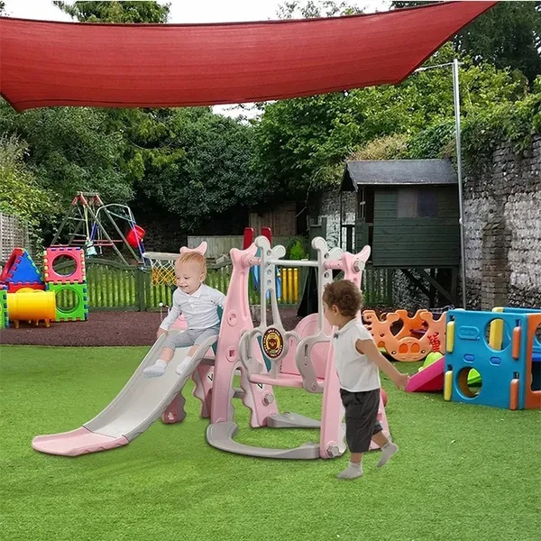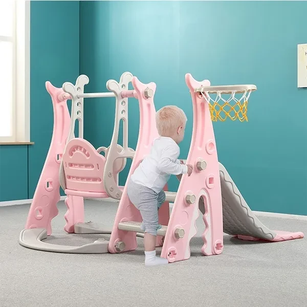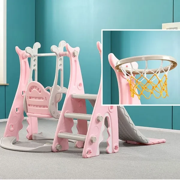 Hello, dear friend. Welcome to my store. ♥Packing list: 1x Slide Swing Combination ♥Specification: Toddler Climber and Swing Set Material: Plastic Packaging Size: 92x51x33cm/36.22x20x12.99in Package weight about: 11000g/24.25lbs Suitable for: 2-10 years old Color: Pink/blue ♥Feature: 3-in-1 Features: This bright and colorful 3-in-1 playing set offers 3 functions: a smooth slide, a sturdy swing, a basketball hoop and to the which is intended for family and domestic outdoor use. All activity elements are appropriately sized for toddlers. Sturdy and Durable: This bright and colorful 3-in-1 playing set is made of durable and non-toxc HDPE material, so it is safe for your kids to slide. This bright and colorful 3-in-1 playing set can accompany your child until he is growing up. Smooth Slide & Safe Swing: The children slide has the gentle slope and easy-to-climb steps offer your babies a smooth slide. The whole slide is connected smoothly without edges for babies tender skin. The children swing can maximum hold 66lbs with strong hangers, the ropes of the swing are made of high quality materials, it is long enough and safe, so it is safe to go swinging with your hand during playtime. Basketball Hoop & Lapping: The basketball hoop is designed according to European and American style, it is perfect for your little athlete to play basketball. When you don't want to use it, you can easily remove it, too. Easy to Assemble: This bright and colorful 3-in-1 playing set can be assembled quickly, it's easy to assemble the parts together with a few steps according to the instruction. All necessary hardware is included, no complicated tools needed. It will provide a never ending adventure for your little ones! They use it either inside or outside. Climbing ladder provides a safe and easy challenge for children. ➤Move to and click tag 【STORE Rating】 to buy more products you need in our store by touching 【Visit Store.Enjoy your shopping time and have a good day ~☺♥