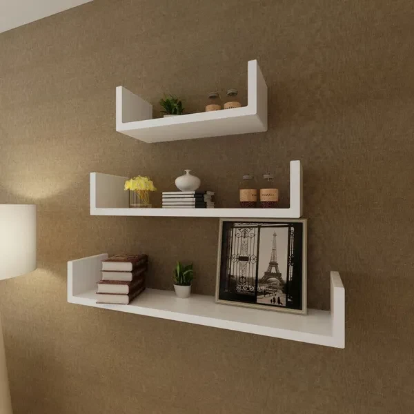3 White MDF U-shaped Floating Wall Display Shelves Book/DVD Storage Wandregal Bücherregal Wandplank boekenkast Bibliothèque étagère murale
