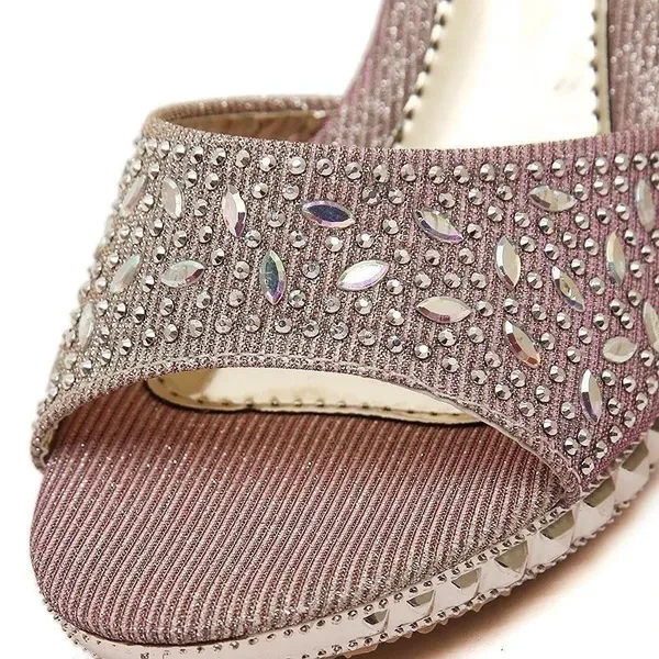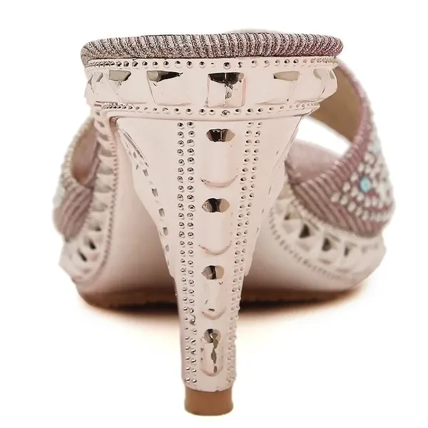 35-40 New Sexy Sandals Rhinestone Bow Decorated Ladies Sandal Women Slippers Fashion High heels Shoes