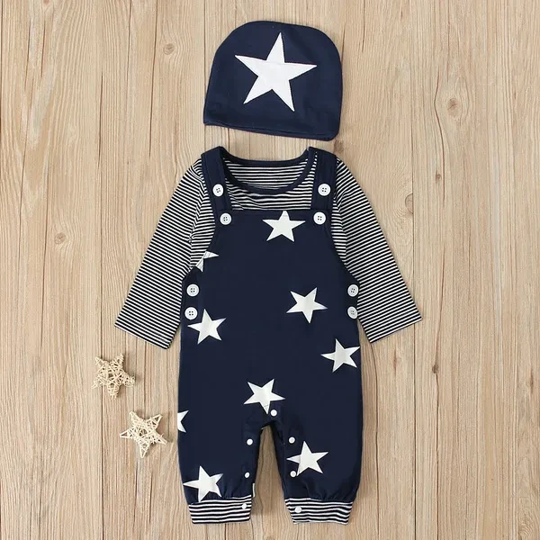 Package Included: 1 set(Long Sleeve Tops+Bib Pants+Hat) Sleeves: Long Sleeve Material: Cotton/Polyester Color:Navy blue,Green Size: 60 70 80 90 95 100 suits for 3 months-3 years (Please refer to dimension drawing,1 CM=0.39 INCH.) Attentions: 1) Shipping:After ordering, we will be the fastest speed of delivery, making it faster to reach. 2) Size:All the length are manual measurement, error range is 1cm-3cm. please understand. 3) Color:Products shooting affected by weather, light and other factors, will produce chromatic aberration, can not be avoided, not a quality problem. 4)Tips: Due to printing and shipping, the product may have some flavor when it is received. You can soak in salt water to not only prevent the clothes from fading but also to remove the taste. Thank you!