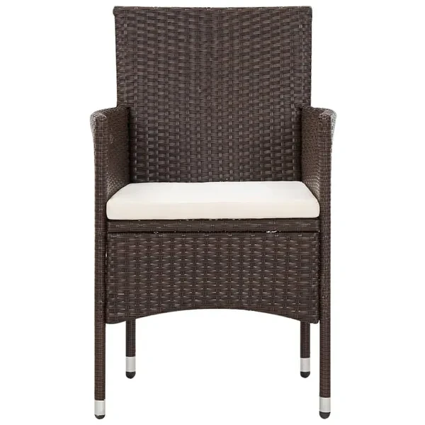 This garden sofa set made of PE rattan is a great addition to your outdoor area. With its straight, stylish design, it gives your garden, balcony or terrace a touch of modern elegance. Made from weather-resistant PE rattan, this lounge set is easy to clean, hard-wearing and ideal for everyday use. The powder-coated steel frames give the sofa, chairs and table robustness and durability. Thanks to the lightweight construction, the furniture can be easily moved. The thickly padded cushions also provide additional comfort. Their covers can be easily removed and washed. This garden lounge set is easy to assemble. Note: We recommend covering the set in rain, snow and frost. Color: brown and creamy white (cushion) Material: PE rattan, steel, frosted glass Upholstery material: 100% polyester Sofa dimensions: 103 x 58 x 81 cm (W x D x H) Armchair dimensions: 59 x 58 x 81 cm (W x D x H) Table dimensions: 60 x 40 x 36 cm (L x W x H) Glass thickness: 5 mm Seat cushion thickness: 4 cm Removable, washable cushion covers Assembly required: Yes Delivery includes: 1 x 2-seater sofa 2 x armchairs 1 x coffee table 3 x seat cushions