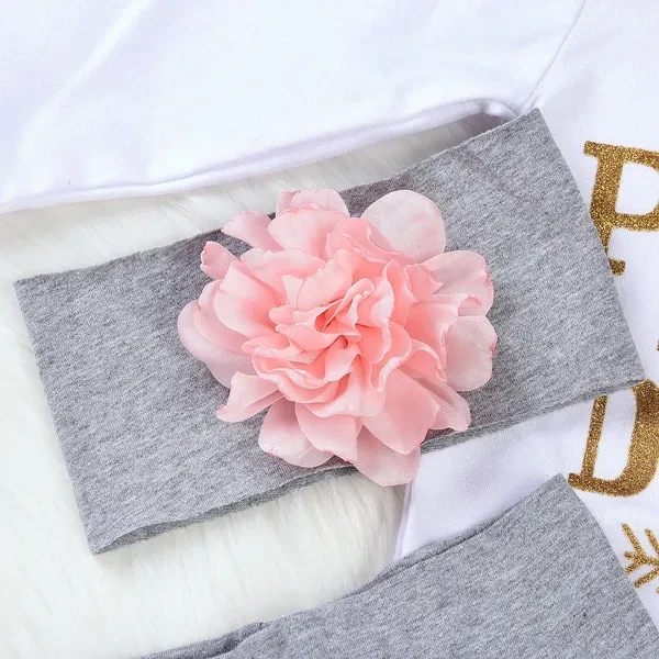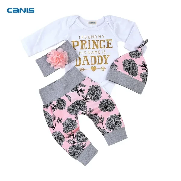 4Pcs Baby Girl Clothes Set Long Sleeve Romper +Long Pants+Headband+Hat