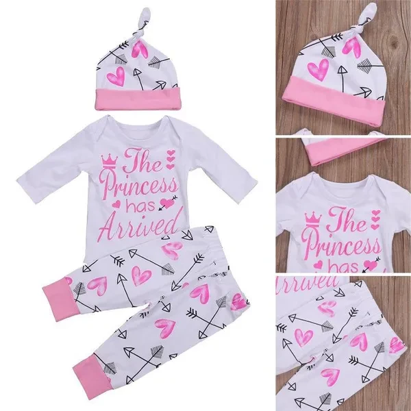 WELCOME - Quality is the first with best service. customers all are our friends. - Fashion design, New,high quality! Brand: Unbranded Pattern: Novelty & Arrow Printed Color: White /Pink Occasion: Party/Casual/Birthday Season: Spring/Summer/Fall/Winter Sleeve Length: Long Sleeve Country/Region of Manufacture: China Listing Includes: 4PCS Baby Girl Outfit - Sizes: 70/80/90/100 Cm There is 2-3% difference according to manual measurement. please check the measurement chart carefully before you buy the item. 1 inch = 2.54 cm Please note that slight color difference should be acceptable due to the light and screen. What You Got: (Headband is included) 1 x Hat 1 x Headband 1 x Long Sleeve Romper 1 x Long Pants