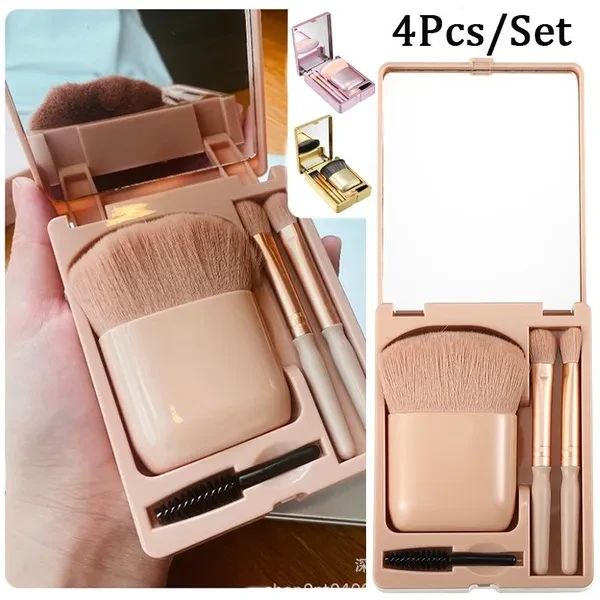 4Pcs/Set Professional Portable Mini Makeup Brush Set Soft Fur Beauty Eye Shadow Foundation Blush Cosmetic Brushes Outdoor Travel Kit