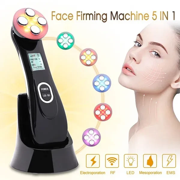 ??Face Massager Content: With box: 1*5 in 1 Face Massager(bulk pack ) 1*Base holder 1*USB cable 1*Use manual ??Face Massager Specification: Material: ABS Input: 100V-240V Output: DC5V500mA Battery capacity: 750mAh Power: Max 10W Charging time: 3.5 hours Use time: 10min/time Product size: 165*45*46mm Color:white,black,pink ??Face Massager Features: 1.It's interated with photon LED therapy,radio frequency(RF)/EMS and LCD display techology 2. It helps the skin to tighten, maintain elasticity, prevent allergies and other problems; 3. It can relieve muscle soreness, reduce skin fatigue, soothe skin tightness, reduce redness, swelling and pain of skin, and resist repeated growth of acne; 4. Stimulate the production of collagen, can help the skin quickly introduce a variety of skin care products, so that the skin doubles the absorption of nutrients. 5.It's a beauty care tool for beauty salon at home/office/trip ??Why buy our Face Massager ? 【5 in 1 Face Beauty Machine 】The LED light has 5 colors with 6 skin care functions that are suitable for various skin problems. Make your face more soft and get the tender skin. 【Solve Different Skin Problems】Focus on reducing wrinkles, skin lifting & tightening, anti-aging and promote the absorption of skin care products. No age and gender restrictions, no time and place restrictions 【Nutrition Lead-In】Use our skin care massager with your skin care product like mask, gel or cream, you will find the absorption effect is much better than the effect that use by hand. 【Portable & Exquisite】 Our portable face care massager is light , small and rechargeable. You can do your own skin care at home and do not need to spend money in beauty salon. 【USB Charging】Our face care massager can be used anytime, anywhere with an easy-to-use USB cable. Fast USB charging via PC,power bank or directly connecting to power source. ??Any inquiry to buy Face Massager ? If you have any dissatisfaction or doubt about our Face Massager , please contact us for the first time, and we will give you a satisfactory solution within 24 hours.