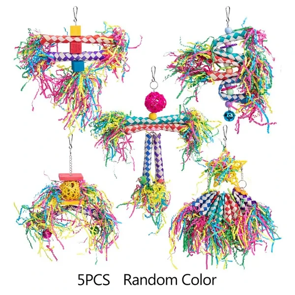 <p>5Pcs Bird Shredding Toys for Parakeet Parrot Chewing Foraging Toy Wooden Blocks Cage Accessories for Small Medium Birds Features: 100% brand new and high quality 5 Types: The set includes 5pcs different types of colorful bird shredding toys, ideal size for small and medium birds, such as parakeets, conures, cockatiel, lovebirds, etc. Keep Birds Active: Chewing and shredding are natural behaviors of birds that are associated with foraging and nesting, which can make birds have hours of fun every day as well as help promote their physical health. Safe Material: Our bird foraging toys are made of edible crinkly papers, non toxic, safe for birds to peck, chew and play. Your pet can enjoy them without any worries. Best Bird Toys: These bird shredding toys are stuffed with bright colorful crinkly paper, which will easily catch birds' eyes and attract birds to play and keep busy for a long period. Perfect gift for your birds. Easy to Install: All the bird toys come with an active hook to easily connect on the top of most bird cages. Specification: Material: Paper Color: Colorful as Pictures Show (Random Color) Size (Approx.): Height 20cm/7.87in, 22cm/8.66in, 23cm/9.05in, 32cm/12.6in Weight: Approx.300g Package Includes: 5 Pieces Parrot Shredding Toys (Random Colors) note: 1.Please allow 0-1cm error due to manual measurement. pls make sure you do not mind before you bid. 2.Due to the difference between different monitors, the picture may not reflect the actual color of the item. Thank you! </p>