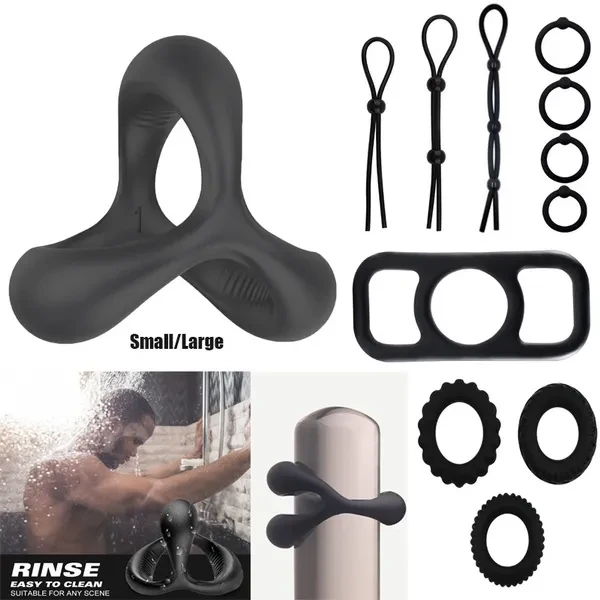 Specification: Item: Elastic Penis Cock Ring Color: Black Material: Silicone Style: A/B/C/D/E/FG/H Size: as the photo or common use size Effectively inhibit ejaculation, phisical help erection Super stretchable and elastic for a comfortable wearing Can be used with condom or alone Bring more overall satisfying sexual experience for lovers and couples To be strong man and give her lasting love. Enjoy yoursleves. Package including: 1/2/3/4/7 pcs of sperm ring per set