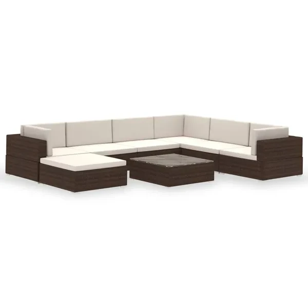 8 pcs. Garden lounge set with brown poly rattan cushions Garten Lounge-Set tuin loungeset ensemble de salon de jardin