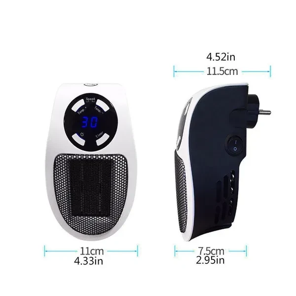 Features: 1. PTC ceramic heating body : it has no open fire, low working temperature, self-control constant temperature function, long service life, high efficiency and energy saving, quiet work and no noise. 2. Built-in constant temperature control system: When the room temperature reaches the set temperature, the machine automatically sleeps, and the room temperature is lower than the set temperature and resumes work to prevent overheating, save energy and save electricity. 3. Intelligent temperature control: double protection temperature control system + overheat protection, right to protect your safety. 4. Low noise and no light: Quiet sleep, feel quiet breathing anytime and anywhere, without light to keep warm, no eye damage, children and the elderly can use it carefree. 5. LED temperature display: temperature display allows you to accurately grasp the indoor temperature. Description: Super protable and convenient to use this fan heater for winter ! Metal grid design: high temperature resistant fine grid design, heat dissipation faster and safer. Fan blade air flow design: larger warm air, faster air convection and higher heat conversion. Specifications: Rated voltage: 220V Power: 500W Color: White,Black Gear position: 1 gear Suitable environment: bedroom, living room, kitchen, study, office, etc. Heating Element: QUARTZ Number of Speed Settings: >Fifth gear Area Heated: <20㎡ Application: <10㎡ Function: Adjustable Thermostat/ Ventilation/Remote Controlled/ Deodorization/ Overheat Protection Package Included: 1 * Mini Fan Heater 1 * Remote Control 1 * Manual Notes: 1. Due to the difference between different monitors, the picture may not reflect the actual color of the item. We guarantee the style is the same as shown in the pictures. 2. Please allow slight dimension difference due to different manual measurement.