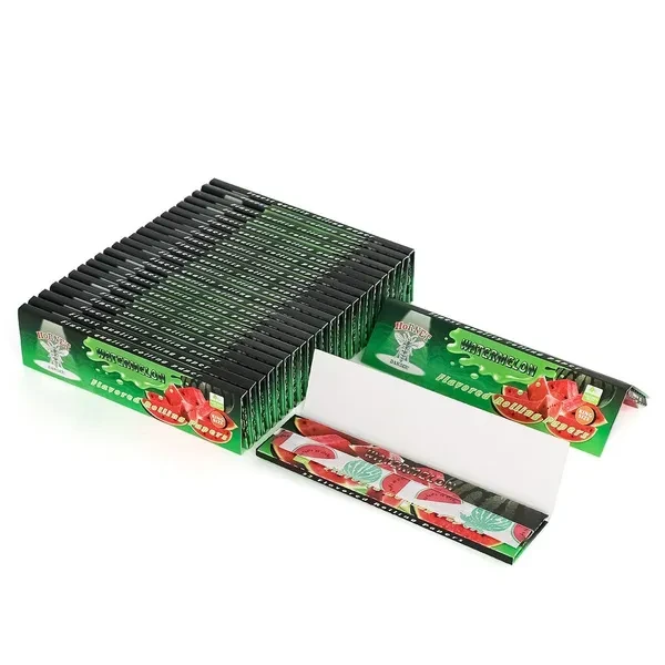 800 leaves watermelon flavor rolling paper 108*44 king size smoking paper arabic gum good price to get color:watermelon flavored size:king size 108*44mm quantity:32 leaves per pack 25 packs per box total 800 leaves feature:chlorine free,pure natural,100% arabic gum,gmo free,unbleached natural gum,slow burning Thanks For each order, we will also send you 2 test booklets of other papers and 1 filter for free as gifts. Enjoy our paper and service! Enjoy shopping!