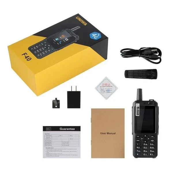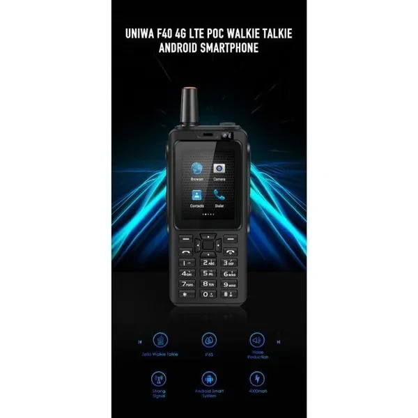 4G version. Long antenna version/Short antenna version Alps F25 2.4-inch touch screen, 4G Android smartphone Android intercom with ZELLO, PTT network intercom 1) 4G signal is enhanced through an external antenna 2) Mtk6735 quad core 3) Zello Walkie Talkie 4) Front and rear dual cameras 5) GPS navigation 6) 3500mah large battery with ultra long standby time 7) Global 4G 8) Double card and double standby Intelligent intercom terminal device with 2.4-inch touch screen and 4G buttons, Android smartphone with ZELLO PTT network and software intercom function, support for downloading apps, black screen intercom, memory 1+8GB quadcore processor core, front and rear dual cameras supporting law enforcement recording, adding memory card to expand memory, supporting the use of third-party APP software or network intercom applications such as Taotao and Weila, and unlimited intercom distance, universal, let it go Network format: GSM, CDMA, 3G (WCDMA), 4G (TD LTE) Processor core: quad core Color: Black European version, Black American version Model: ALPS F25 Running memory: 1GB Appearance: straight plate Main screen size: Small screen (below 4.0 inches) CPU brand: MediaTek Brand: UNIWA Article number: F25 3C Certificate No.: 2021161606612142 Body memory: 1G+8GB standard version Battery capacity: 3000mAh -3999mAh Network mode: dual card dual mode Memory card: supports memory cards Mobile version: Hong Kong, Macao and Taiwan version Telecommunication equipment network access license number: 02-B432-214122 Operating system: ANDROID Camera pixels: 8-11.99 million Main sales regions: Africa, Europe, South America, Southeast Asia, North America, Northeast Asia, Middle East Phone type: Professional Android intercom phone 4G; Model No. Alps F40 Waterproof Level IP65 Dimensions 119*55*24.5mm Net Weight 188g (Including battery) Service Provide Unlocked Style Bar Shell Material Plastic Band 2G: GSM850/900/1800/1900MHz; 3G: WCDMA B1/B2/B5/B8, TD-SCDMA B34/B39 4G: FDD-LTE:B1/B3/B4/B7/B8/B20; TDD-LTE:B38/B39/B40/B41 SIM card Dual SIM card dual standby OS Android 6.0 Marshmallow CPU MTK6737M Cortex A53 quad core, 1.1GHz; GPU: Mali-T720 RAM 1GB RAM ROM 8GB ROM, support TF up to 32GB maximally Screen 2.4 inch QVGA IPS capacitive touch screen, 320*240px Phonebook 1000 Message SMS/MMS Input Handwrite/Keypad Speaker φ32 loudspeaker Earphone Port 3.5mm  Data transfer USB/Bluetooth Mobile internet WAP/WiFi Camera Double cameras, 0.3MP front camera, 5.0MP back camera FM Radio Yes, earphone needed WiFi Yes, IEEE802.11b/g/n GPS Yes, also support A-GPS BT Yes, V4.0 (BR/EDR+BLE) POC Button Yes, Zello walkie talkie apps can be pre-installed Gravity Sensor N/A Standby time Up to 240 hours Other Features Email, wallpapers, tethering & portable hotspot, play store, etc Languages English, Bahasa Indonesia, Bahasa Melayu, Cestina, Dansk, Deutsch, Eesti, Espanol, Filipino, French, Hrvatski, Isizulu, Kiswahili, Italiano, Latviesu, Lietuviu, Magyar, Nederlands, Norsk, Polish, Portuguese, Romana, Rumantsch, Slovencina, Slovenscina, Suomi, Svenska, Vietnamese, Turkish, Greek, Bulgarian, Russian, Ukrainian, Urdu, Hebrew, Arabic, Persian, Thai, Khmer, Hindi, Japanese, Korean, Simplified/Traditional Chinese Color Black Accessories 1 x 4000mAh Li-Polymer battery 1 x USB cable 1 x USB power adaptor 1 x Belt chip 1 x User manual