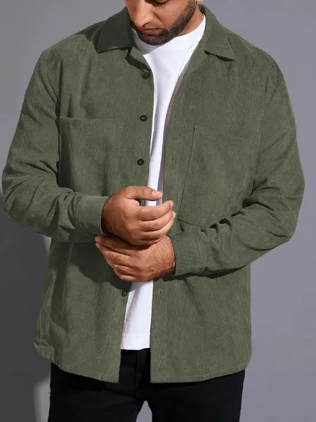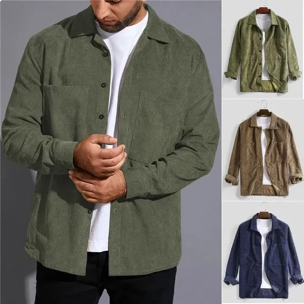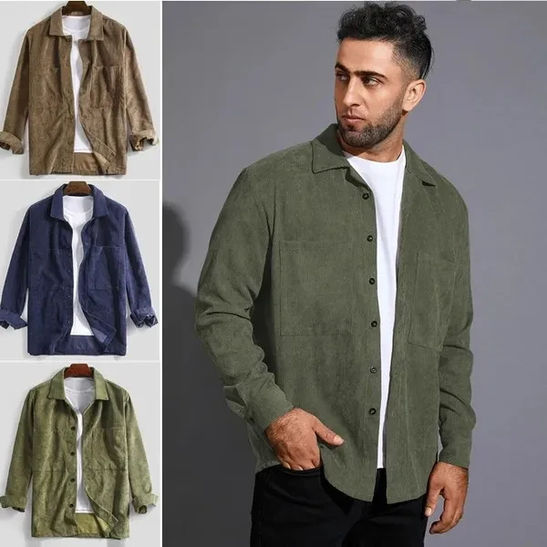 Autumn and Winter Men Fashion Casual Long Sleeve Corduroy Shirt Male Button-down Retro Casual Shirts