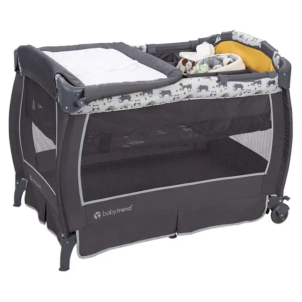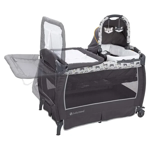 Recommended for newborns, this play nursery has everything your little ones need to stay entertained. Equipped with 2 detachable full-sized bassinet with toys and 1 spacious play yard, your infants will love spending time in the Baby Trend Twin Nursery Center. Lay your babies on the foam mattress for a nap, activate the music center to soothe your babies to sleep, and enjoy some much-deserved "you" time.