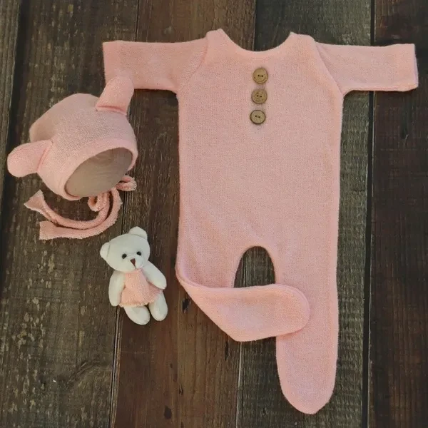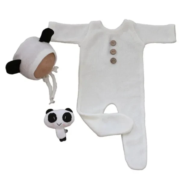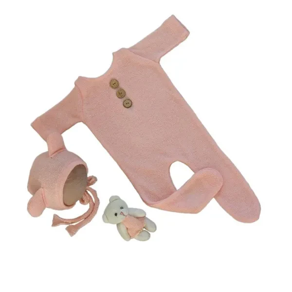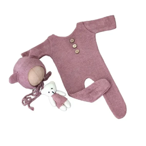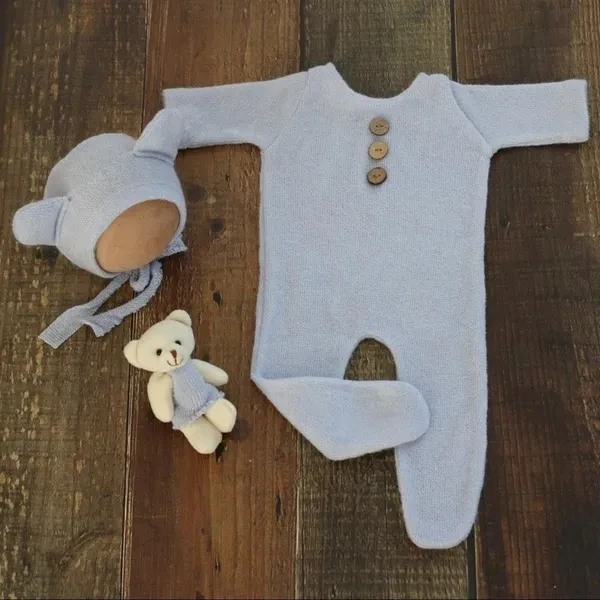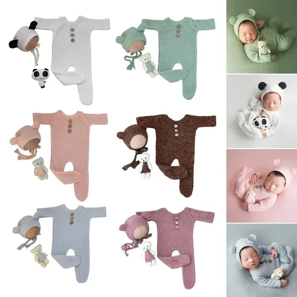 Bear Themed Outfit Hat Jumpsuit Bear Set Baby Photography Props Newborn Photoshooting Accessories Infant Photo Suit