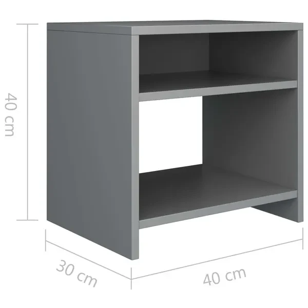 Bring a classic charm into your interior with our bedside cabinet! Made of chipboard, the nightstand is sturdy, durable and versatile. As a universally applicable chest, you can also use it as a couch table in the living room. The open compartment and the shelf provide ample storage space for keeping your magazines, books, remote controls and other small items well organised and within reach. Additionally, this bedside cabinet is easy to clean with damp cloth. Upgrade your interior to the next level with our elegant nightstand! It is easy to assemble with included mounting materials. Colour: Grey Material: Chipboard Dimensions: 40 x 30 x 40 cm (W x D x H) With an open compartment and a shelf Mounting materials included
