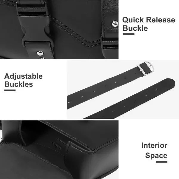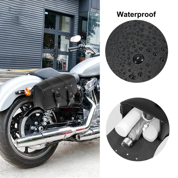 Black Left Motorbike Saddlebag Left Side Tool Bag Luggage Bag for Motorcycle Waterproof Faux Leather Adjustable Buckle Bag with Water Bottle Holder Bag