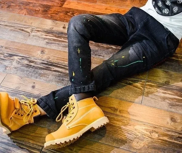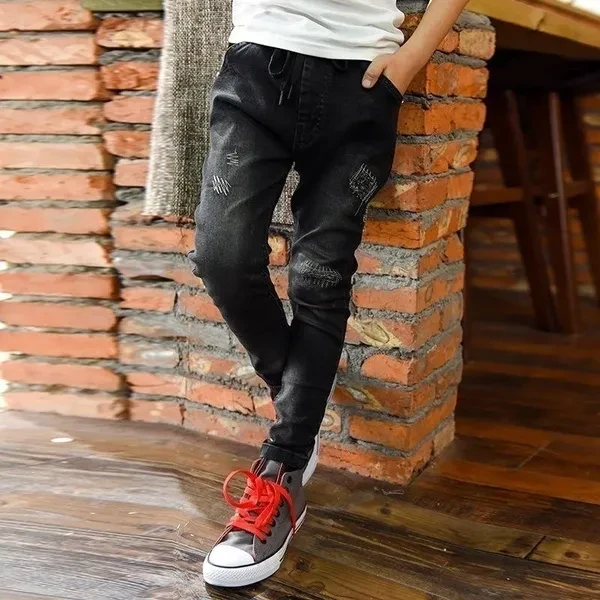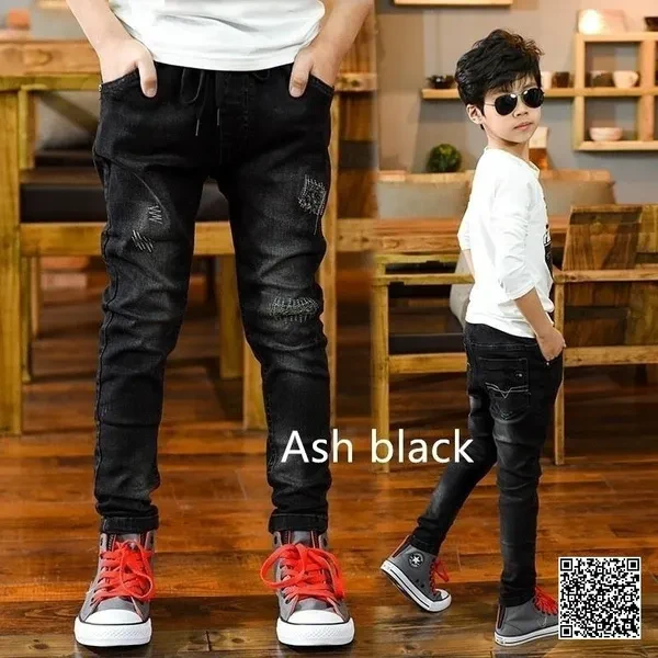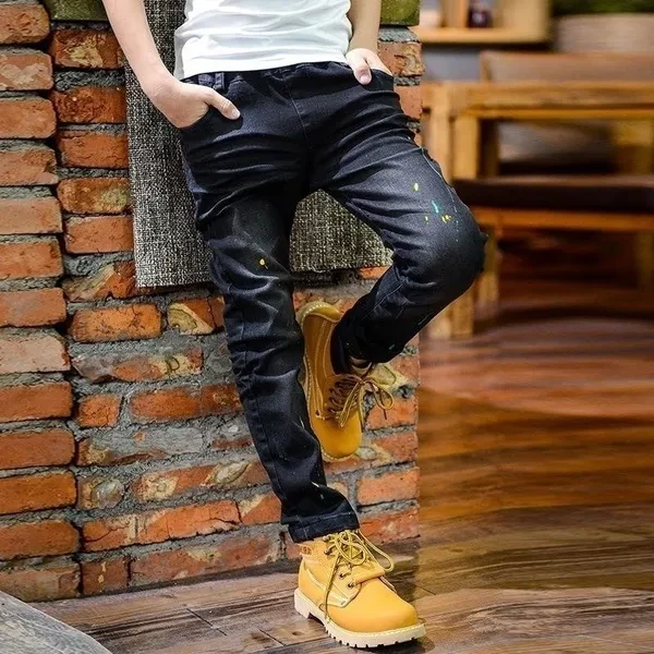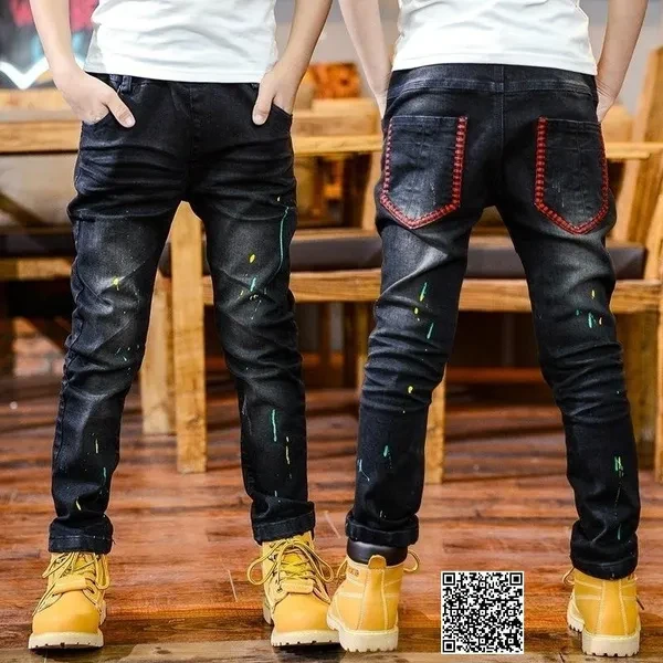 Children Spring&Autumn Casual Jeans Korean Paint Boys Denim Pants Teen Trousers Black 2 Colors 5-14 Years