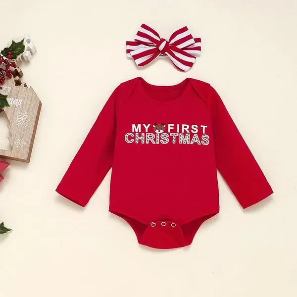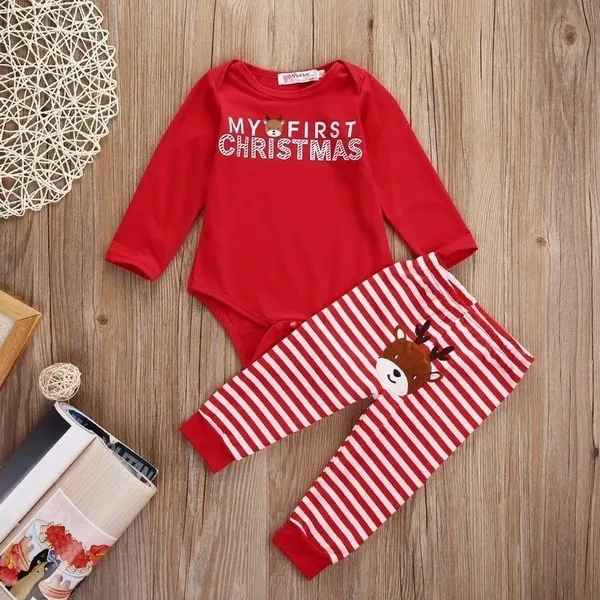 Christmas Newborn Baby Girls Boys clothes 2pcs set Tops Romper Pants Outfits long sleeves baby clothing sets 0-18 month