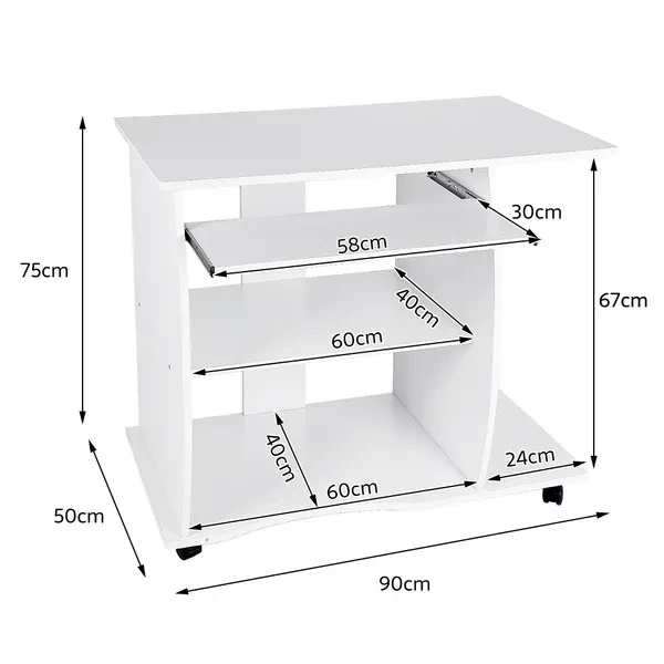 Computer Desk Office Laptop PC Table Home Office Workstation Drawer Shelf Black/White 90x75x50cm FR