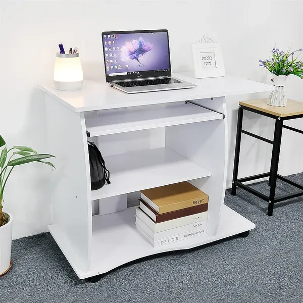 Description: 1. stable and sturdy structure, chipboard + desktop cover seamless melamine veneer, moisture-proof, scratch-resistant, non-fading; 2. practical design - the desktop surface is 90 x 50 cm, the wide area can better meet your work requirements. The retractable keyboard stand (58 x 30 cm) reduces noise and ensures a quiet working environment. The two shelves under the table can be kept, books, plants, books, etc. In addition, the large space on the right side of the desktop (24 x 46 x 67 cm) is provided for the PC. 3. easy to move - On the bottom there are 4 wheels, 2 of which are equipped with brakes that can easily move the table top, reduce noise, easy to clean and better protect the floor. 4. easy to assemble and clean assembly is easy to assemble with the assembly instructions and numbered parts shown, easy to clean with a damp cloth; 5. versatility: suitable for offices, bedrooms, study, etc ... Specifications:: - Product size: 90 * 50 * 75cm - 15MM chips triamine board E1 edge banding - Surface covered with melamine veneer Delivery: - Computer desk * 1 - Assembly instructions * 1 - Mounting screws * 1 Hope you have a good shopping!