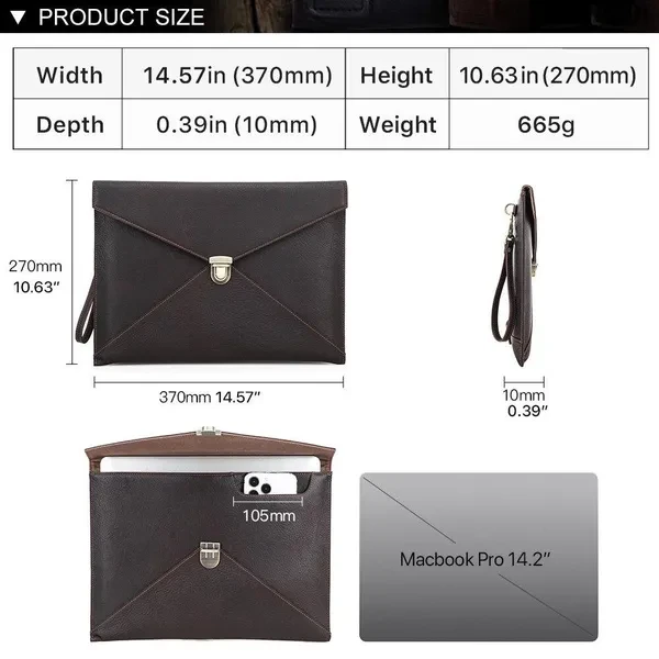 ● Brand Name: CONTACTS FAMILY ● Style: Laptop Cases ● Origin: CN(Origin) ● Model Number: CF3054 ● Style: Casual ● Material: GENUINE LEATHER ● Pattern Type: Solid ● Applicable Models: Macbook ● color: Coffee ● material: 100% genuine cow leather ● Compatiable: for 13.3-14.2 inch inch Macbook ● DIY: Free engraving for letters of name/numbe EU Representative Info: