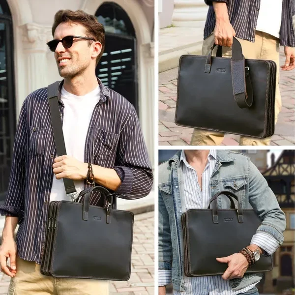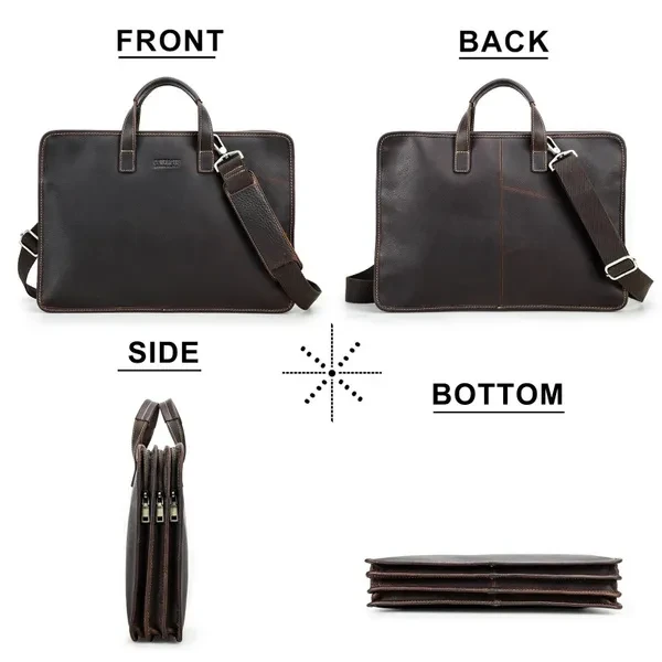 CONTACT'S Genuine Leather Briefcase for 15.6 inch Computer Bag Shoulder Messenger Bag Laptop Bags Business Handbag