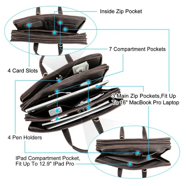 ● Genuine Leather Type: Cow Leather ● Place Of Origin" China (mainland) ● Size: 39*6*28cm ● Interior: Cell Phone Pocket,Interior Zipper Pocket,Interior Compartment,Computer Interlayer ● Handle/Strap Type: soft handle ● Material Composition: Genuine Leather ● Weight: 1.1kg ● Model Number: MB289 ● Lining Material: POLYESTER ● Style: vintage ● Gender: Men ● Pattern Type: Solid ● Closure Type: zipper ● Main Material ● Brand Name: Contact’S ● Item Type: Briefcases
