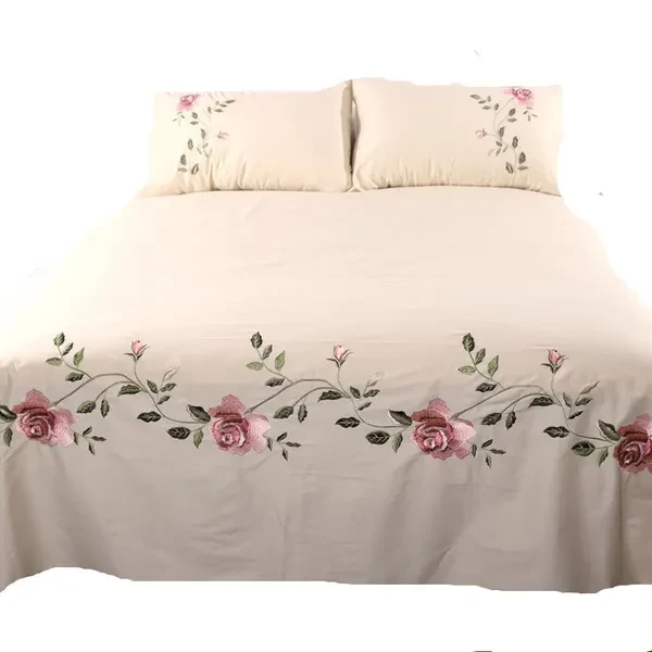 Filling: None Type: Sheet & Pillowcase Sets Material: Cotton Grade: Grade A Thread Count: ≥600s Pattern: Embroidered Pattern Type: Twill Style: Twill Technics: Woven Use: Home Fabric Count: 60 Quantity: 3 pcs Color Fastness (Grade): National Standards Fabric Density: 133X include:3pcs:1 flat sheet +2 pillowcases Full : flat sheet 230x250cm pillowcase48x74cm King: flat sheet 250x250cm pillowcase48x74cm Queen: flat sheet 250x270cm pillowcase48x74cm
